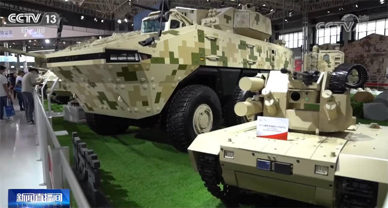 总台央视记者 吴天白:我们可以看到,本届航展兵器馆装备的排列不再是同类型装备相邻排列,履带式的坦克就会搭配轮式无人车,而轮式装甲车就会配备履带式无人车进行辅助,采用了一种“轮履结合”的组合形式。