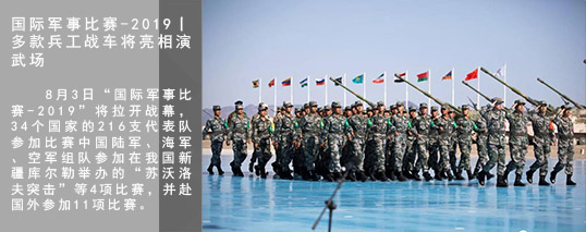 国际军事比赛-2019是由俄罗斯联邦国防部发起并主导、有众多国家参加的国际军事合作交流活动。2019年8月3日起,中国军队将派团参加“国际军事比赛-2019”,并在中国新疆库尔勒承办4项比赛。[详细]